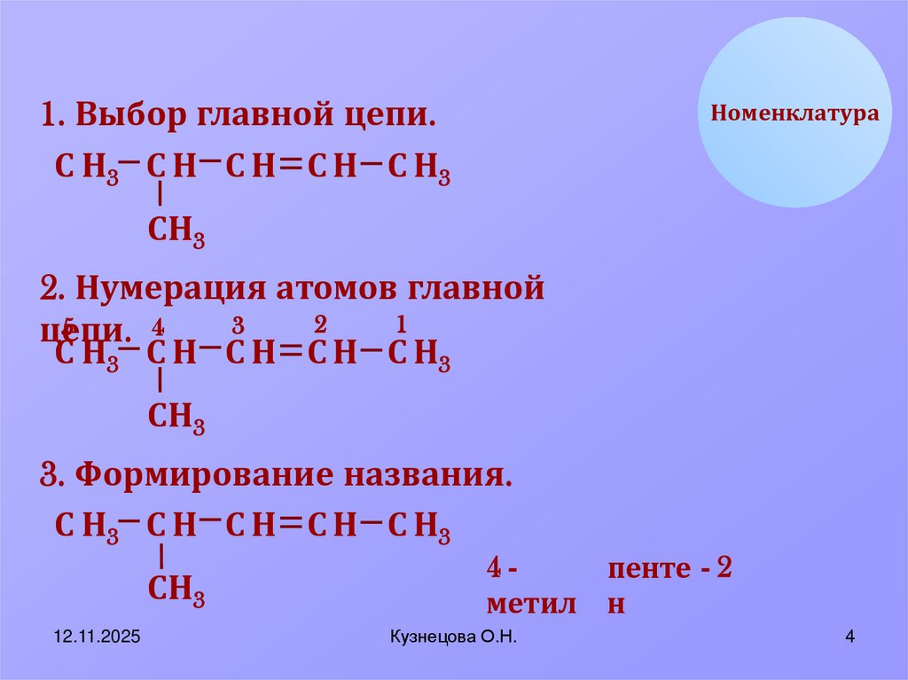 1. Выбор главной цепи.С Н3 С Н С Н С Н С Н3