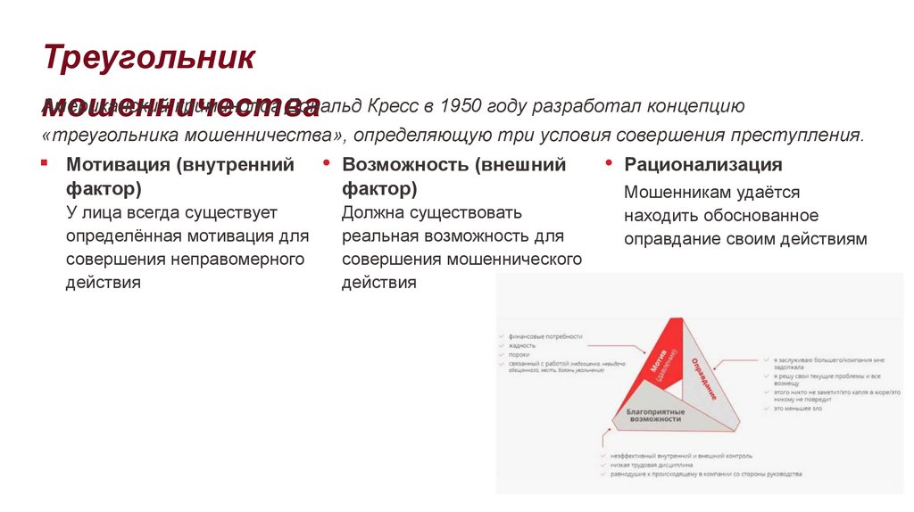 «треугольника мошенничества», определяющую три условия совершения преступления.