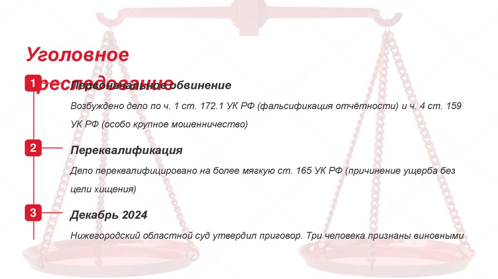 дело о фальсификации бухгалтерской отчётности и выводе средств из