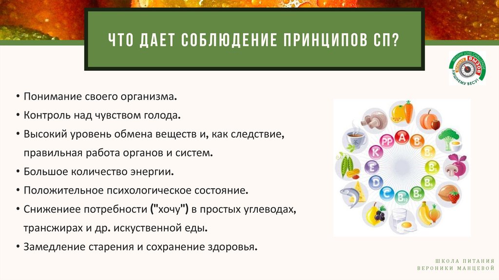 ЧТО ДАЕТ СОБЛЮДЕНИЕ ПРИНЦИПОВ СП?• Понимание своего организма.