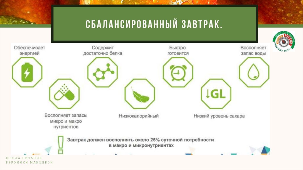 СБАЛАНСИРОВАННЫЙ ЗАВТРАК.Ш К ОЛ А П И ТА Н И Я