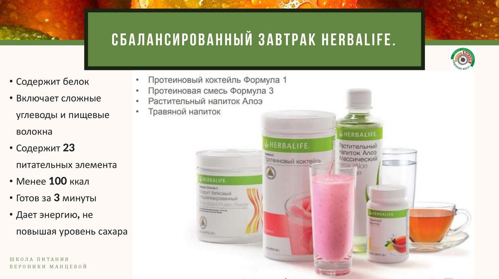 С Б АЛАН С И РОВАН Н Ы Й ЗАВТ РАК H E RBALIFE.• Содержит белок