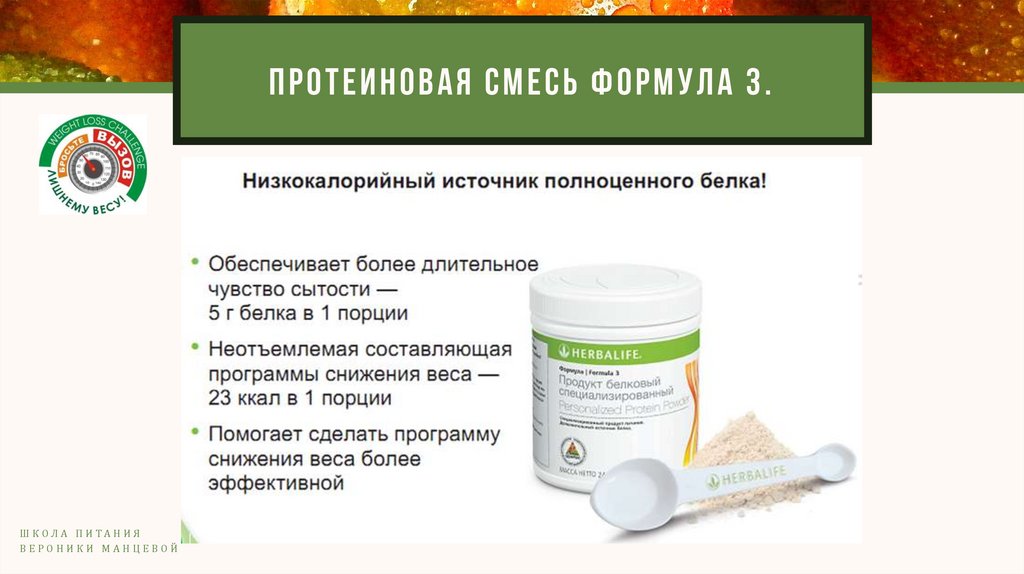 ПРОТЕИНОВАЯ СМЕСЬ ФОРМУЛА 3.Ш К ОЛ А П И ТА Н И Я