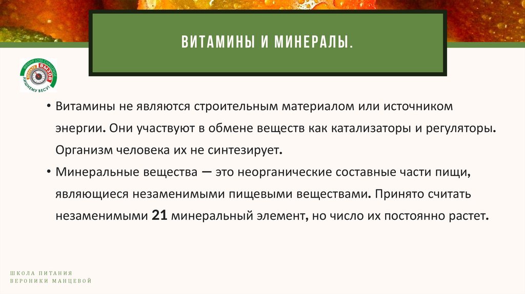 ВИТАМИНЫ И МИНЕРАЛЫ.• Витамины не являются строительным материалом или источником