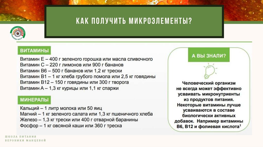 КАК ПОЛУЧИТЬ МИКРОЭЛЕМЕНТЫ?Ш К ОЛ А П И ТА Н И Я