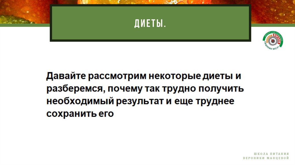 ДИЕТЫ .Ш К ОЛ А П И ТА Н И Я