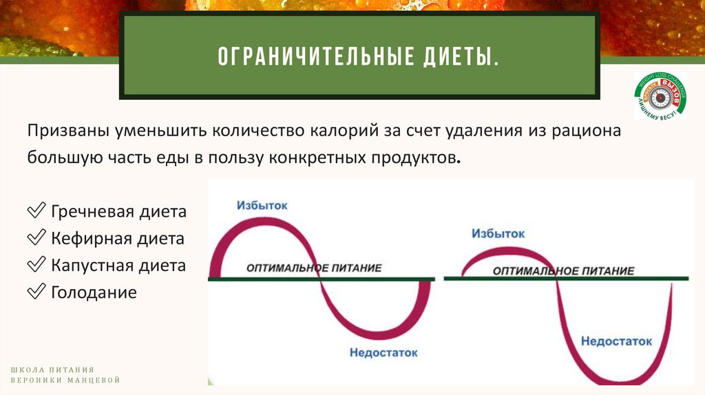 ОГРАНИЧИТЕЛЬНЫЕ ДИЕТЫ.Призваны уменьшить количество калорий за счет удаления из рациона