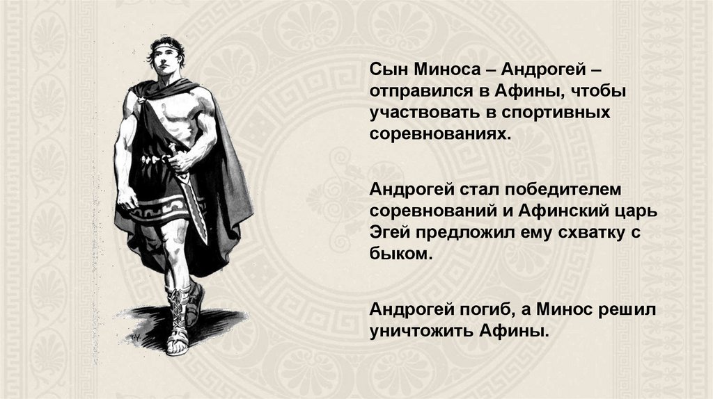 Сын Миноса – Андрогей –отправился в Афины, чтобы