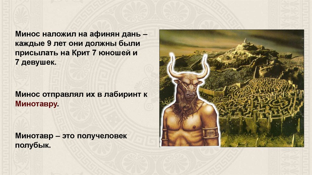 Минос наложил на афинян дань –каждые 9 лет они должны были