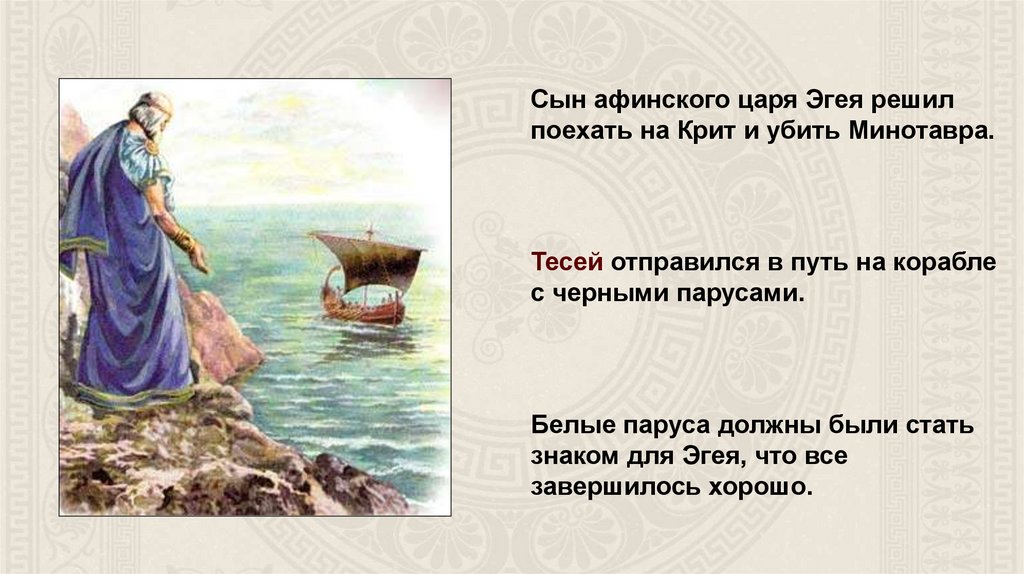 Сын афинского царя Эгея решилпоехать на Крит и убить Минотавра.