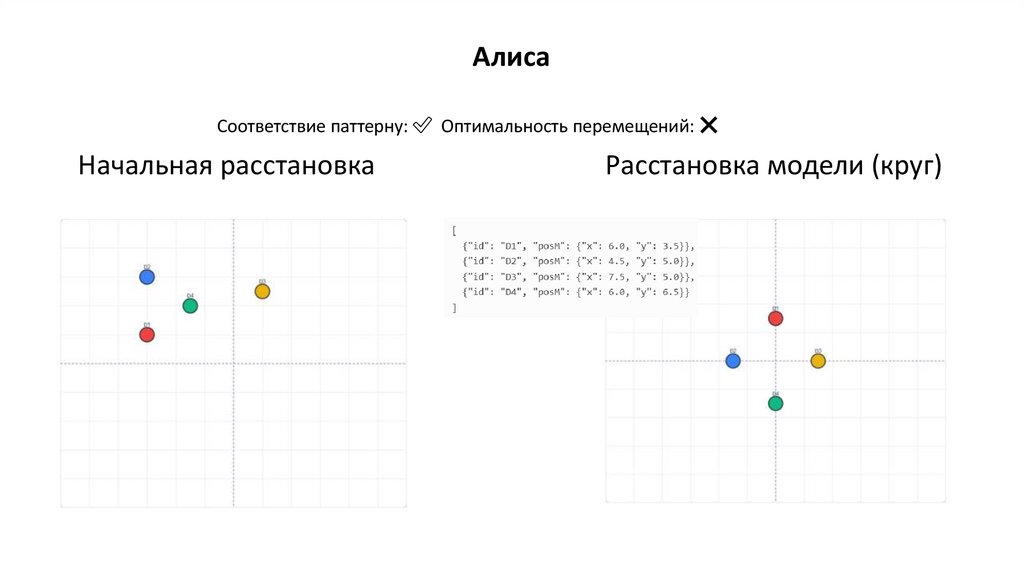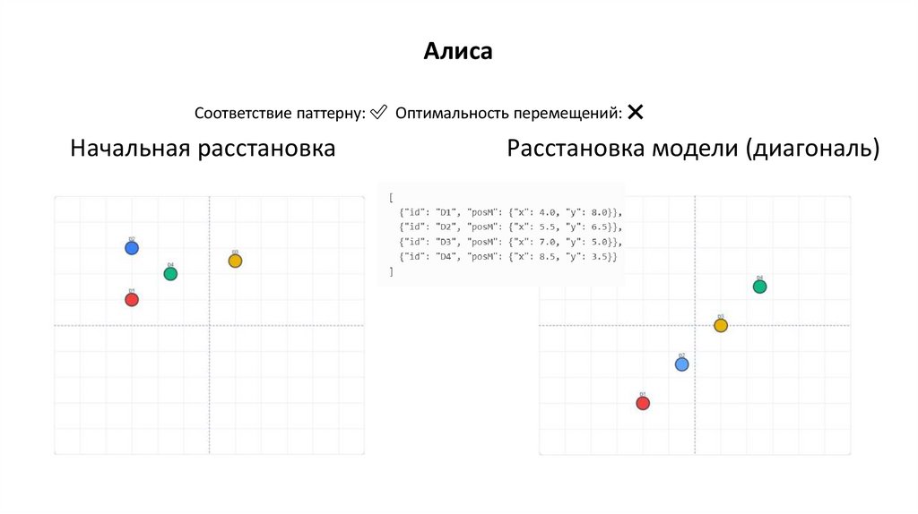 АлисаСоответствие паттерну: ✅ Оптимальность перемещений: ❌