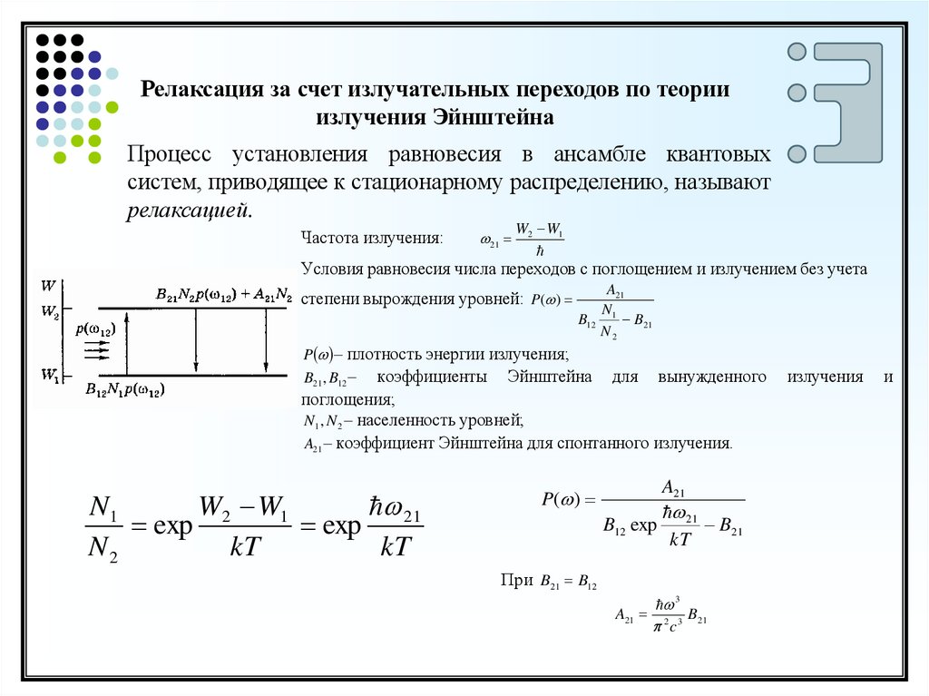 Релаксация за счет излучательных переходов по теорииизлучения Эйнштейна