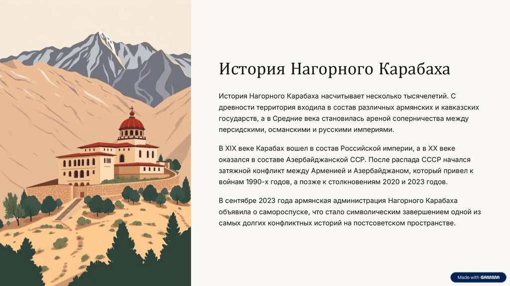 История Нагорного КарабахаИстория Нагорного Карабаха насчитывает несколько тысячелетий. С