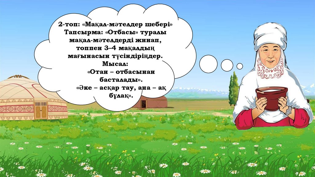 2-топ: «Мақал-мәтелдер шебері»Тапсырма: «Отбасы» туралы