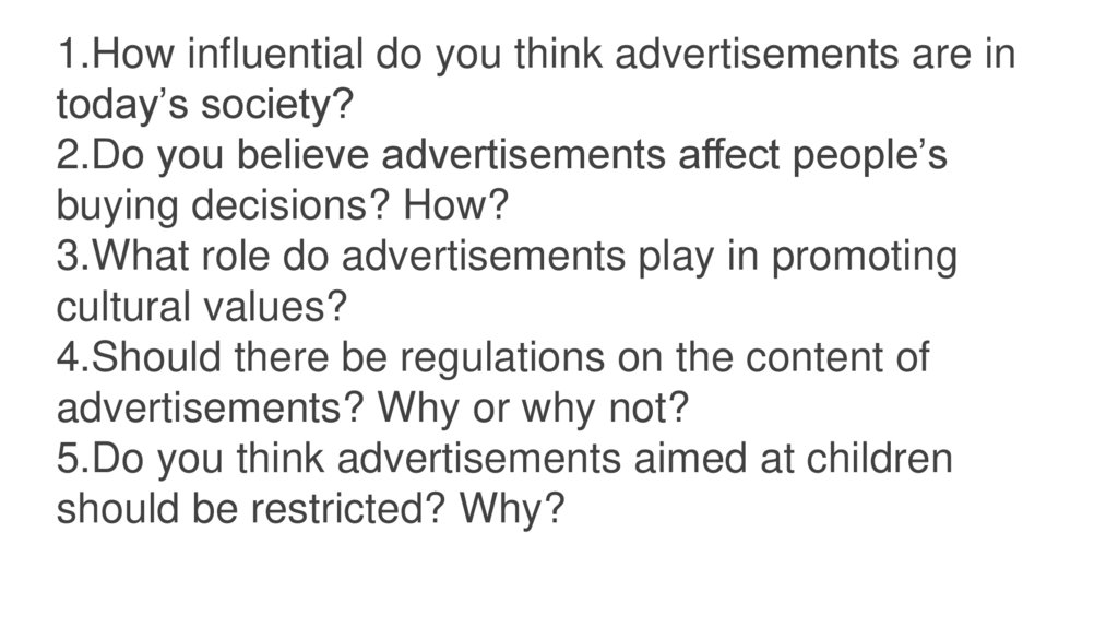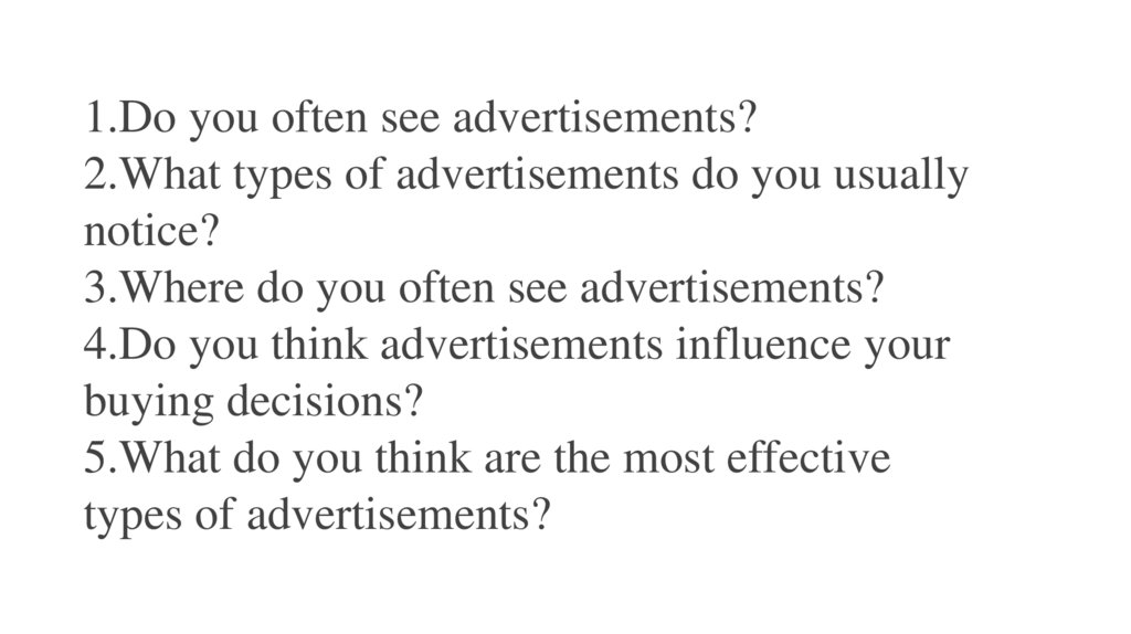 1.Do you often see advertisements?2.What types of advertisements do you usually
