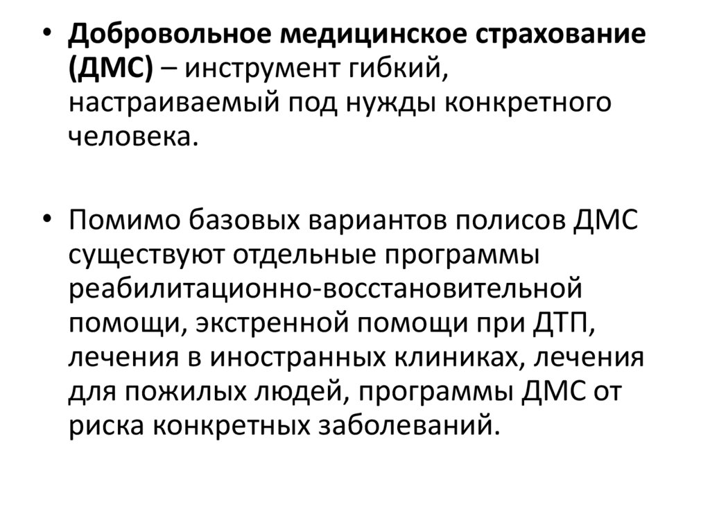 • Добровольное медицинское страхование(ДМС) – инструмент гибкий,