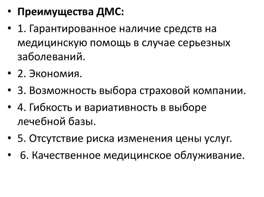 • Преимущества ДМС:• 1. Гарантированное наличие средств на