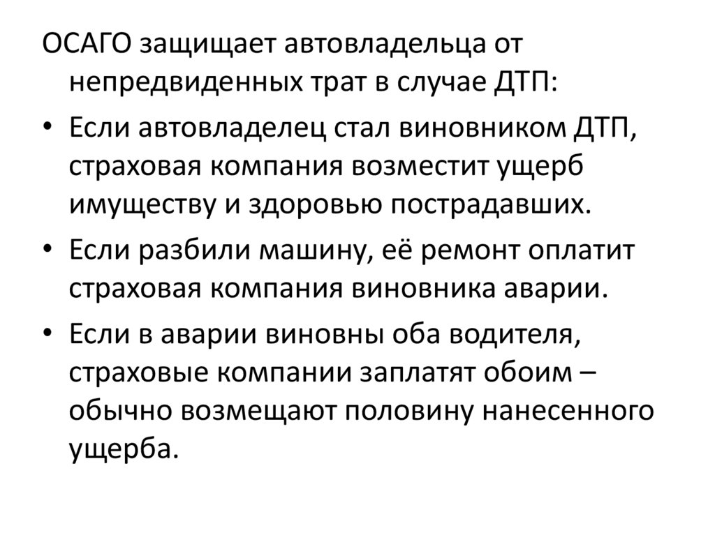 • ОСАГО – это обязательное страхованиеавтогражданской ответственности. То есть
