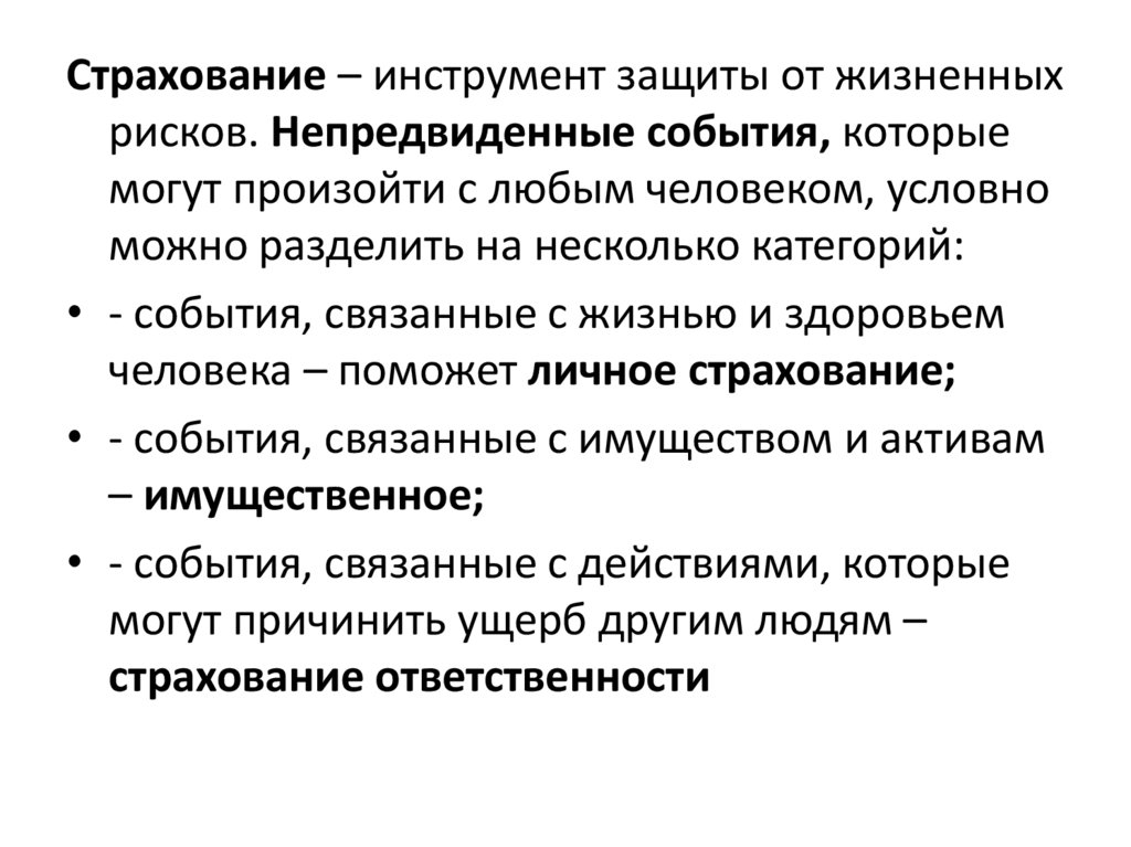 Страхование – инструмент защиты от жизненныхрисков. Непредвиденные события, которые