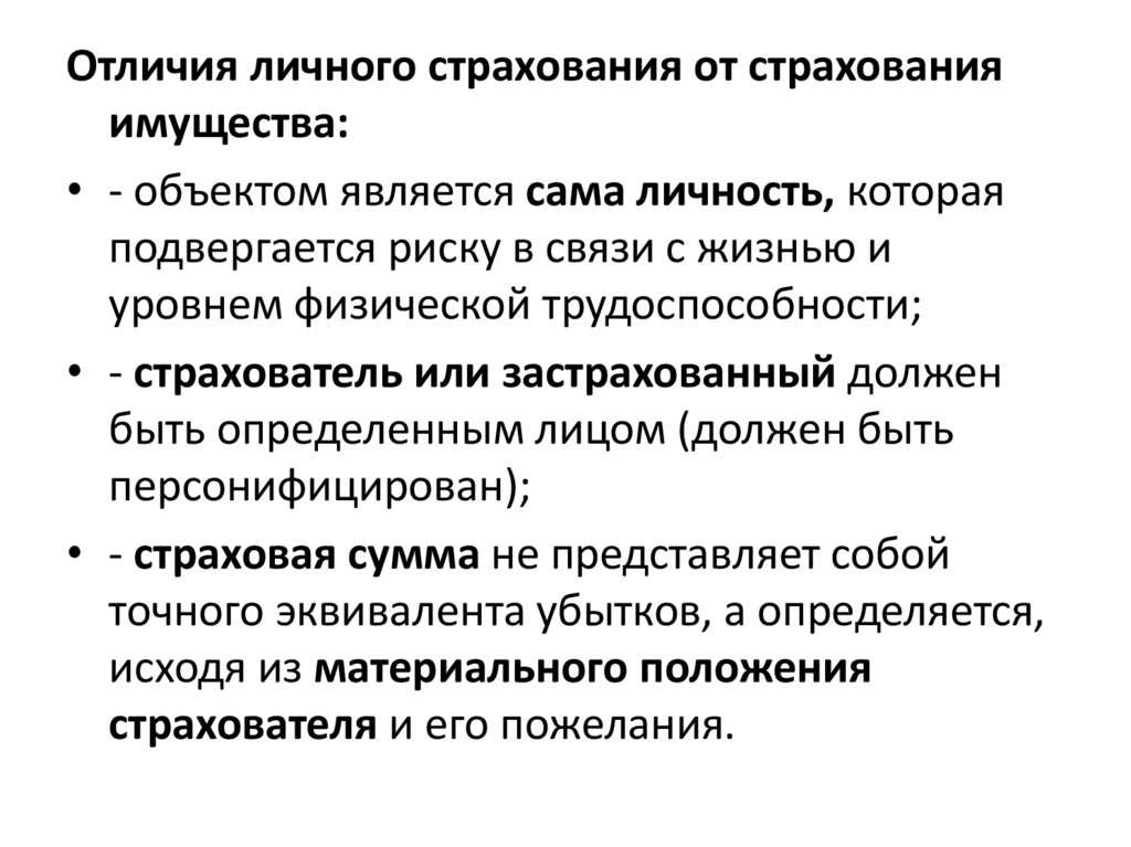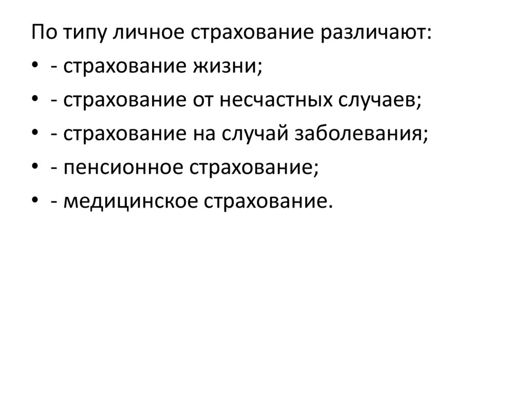 • Личное страхование – форма защиты отрисков, которые угрожают жизни человека,