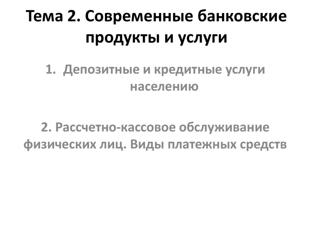 2.2. Рассчетно-кассовое обслуживаниефизических лиц. Виды платежных средств