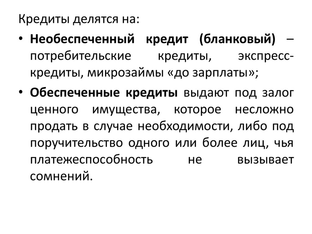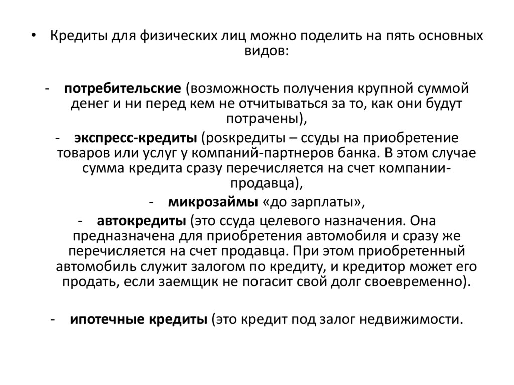(ипотечные, автокредиты, потребительские нецелевые займы) и
