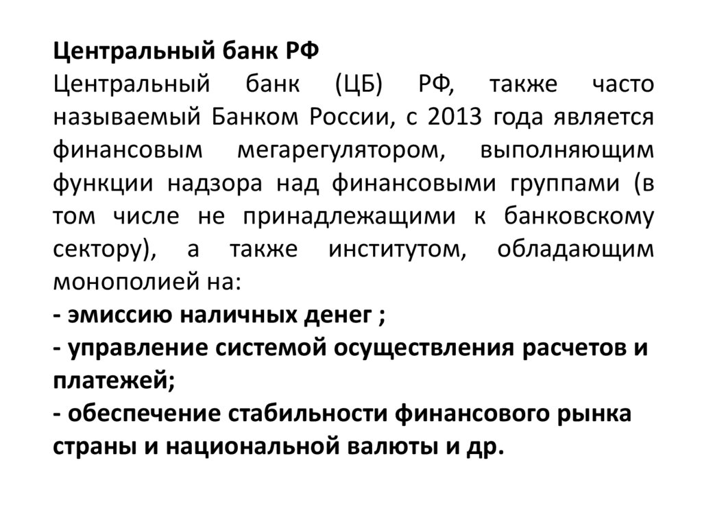 Центральный банк РФЦентральный банк (ЦБ) РФ, также часто