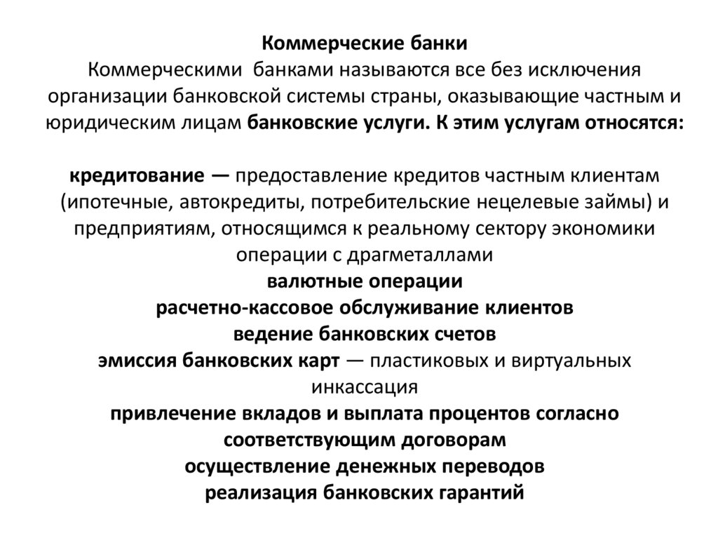 Коммерческие банкиКоммерческими банками называются все без исключения