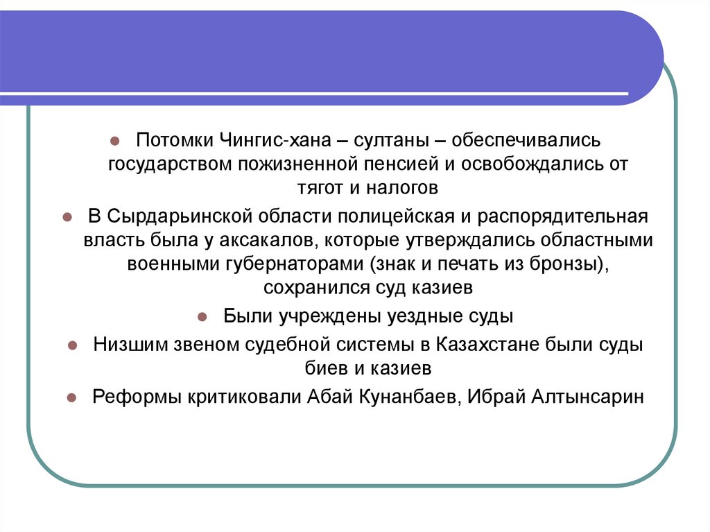 Потомки Чингис-хана – султаны – обеспечивалисьгосударством пожизненной пенсией и освобождались от