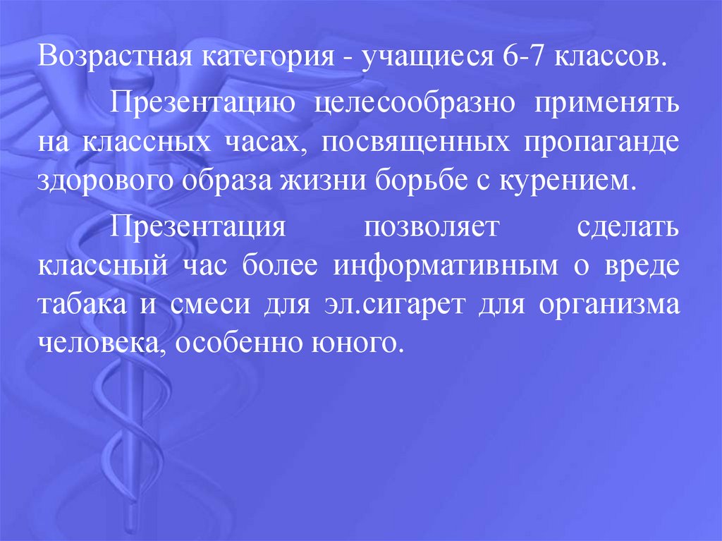 Возрастная категория - учащиеся 6-7 классов.Презентацию целесообразно применять