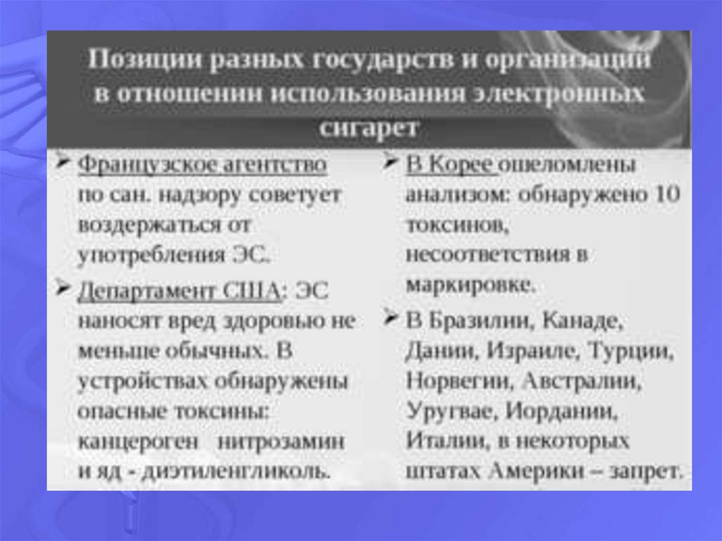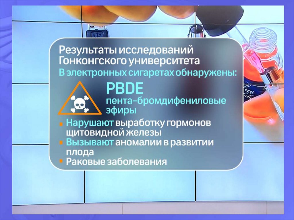 • Пары, выпускаемые ЭС, не безвредны для окружающих.Содержание выкотоксичных химических веществ и никотина