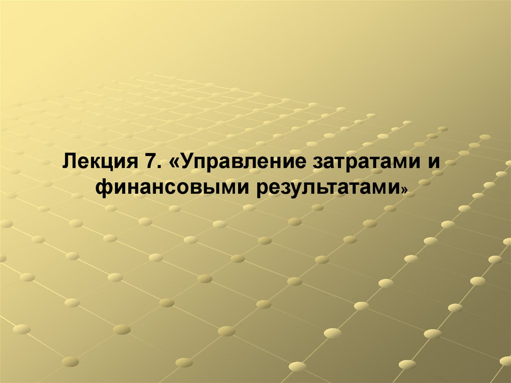 Лекция 7. «Управление затратами ифинансовыми результатами»