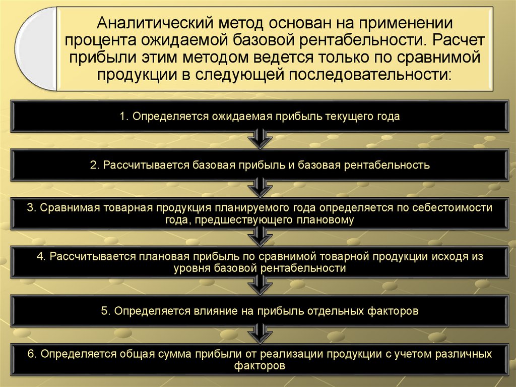 Аналитический метод основан на применениипроцента ожидаемой базовой рентабельности. Расчет