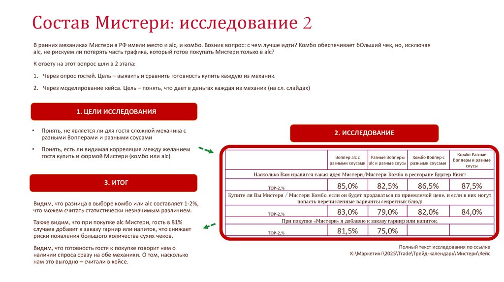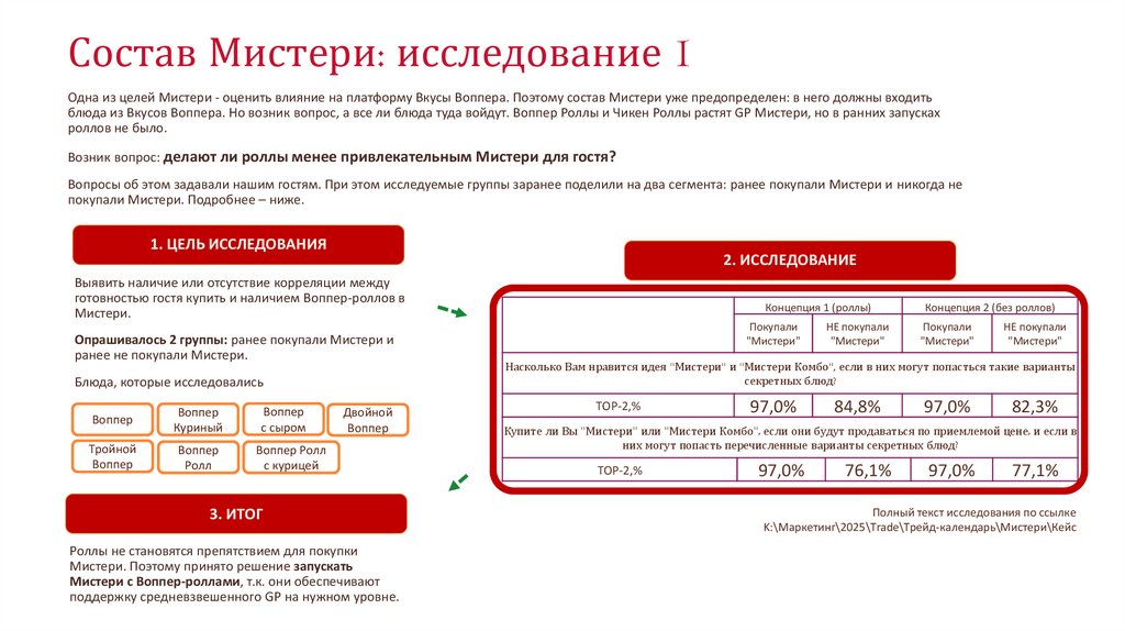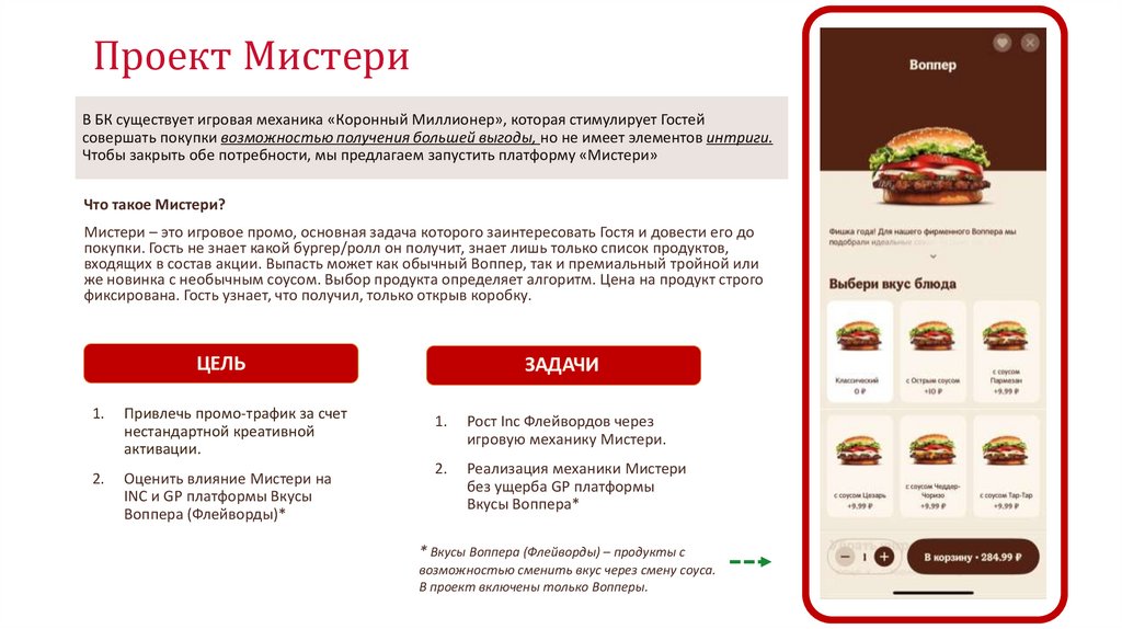 Состав Мистери: исследование 1Одна из целей Мистери - оценить влияние на платформу Вкусы Воппера. Поэтому состав Мистери уже предопределен: в него должны входить