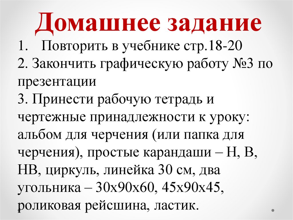 Домашнее задание1. Повторить в учебнике стр.18-20