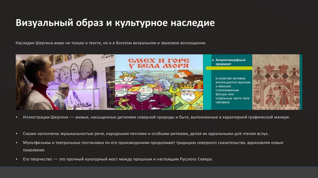 Визуальный образ и культурное наследиеНаследие Шергина живо не только в тексте, но и в богатом визуальном и звуковом воплощении.