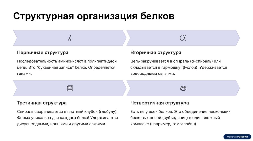 Структурная организация белковПервичная структура