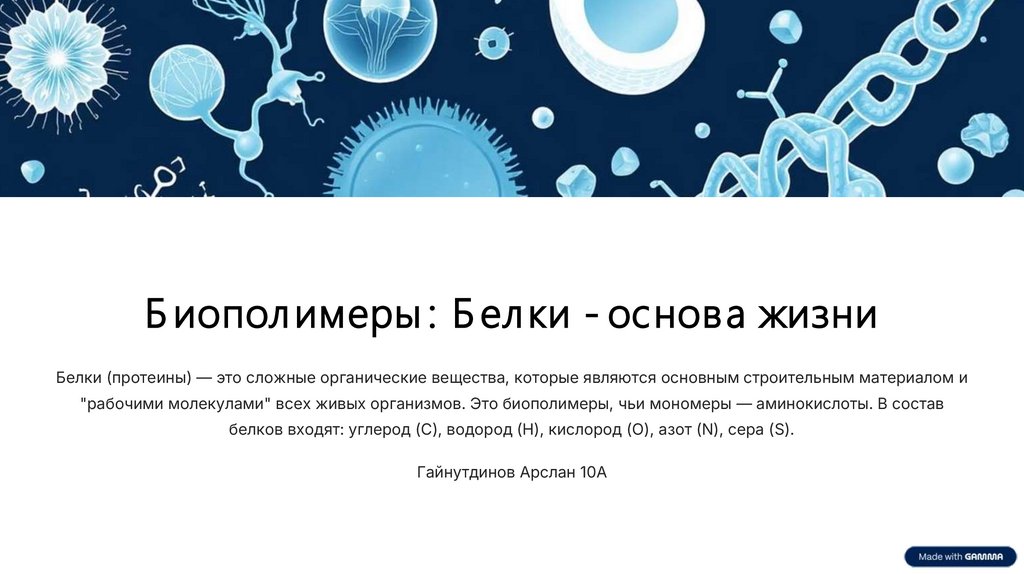 Б иопол имеры : Б ел ки - основа жизниБелки (протеины) — это сложные органические вещества, которые являются основным строительным материалом и