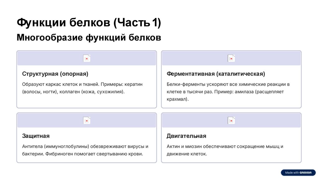 Функции белков (Часть 1)Многообразие функций белков