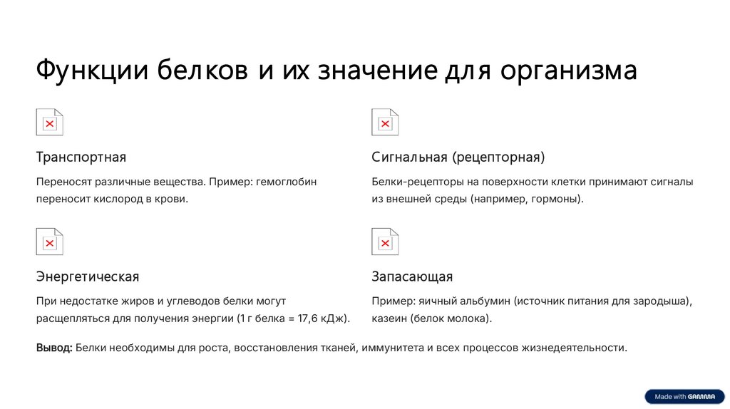Вывод: Белки необходимы для роста, восстановления тканей, иммунитета и всех процессов жизнедеятельности.