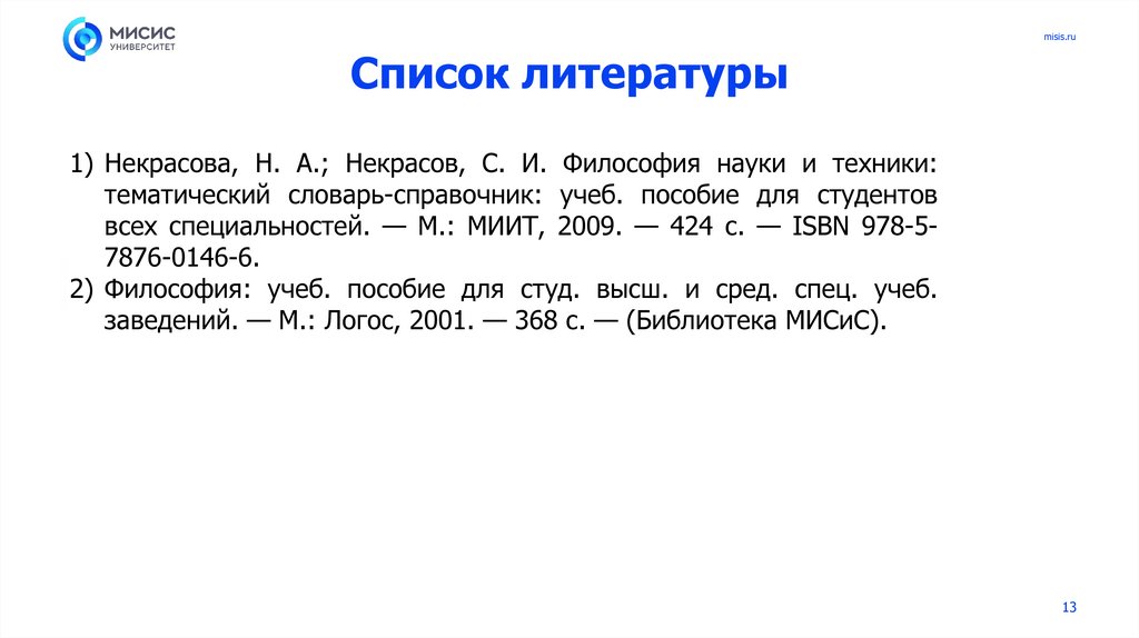 misis.ruСписок литературы