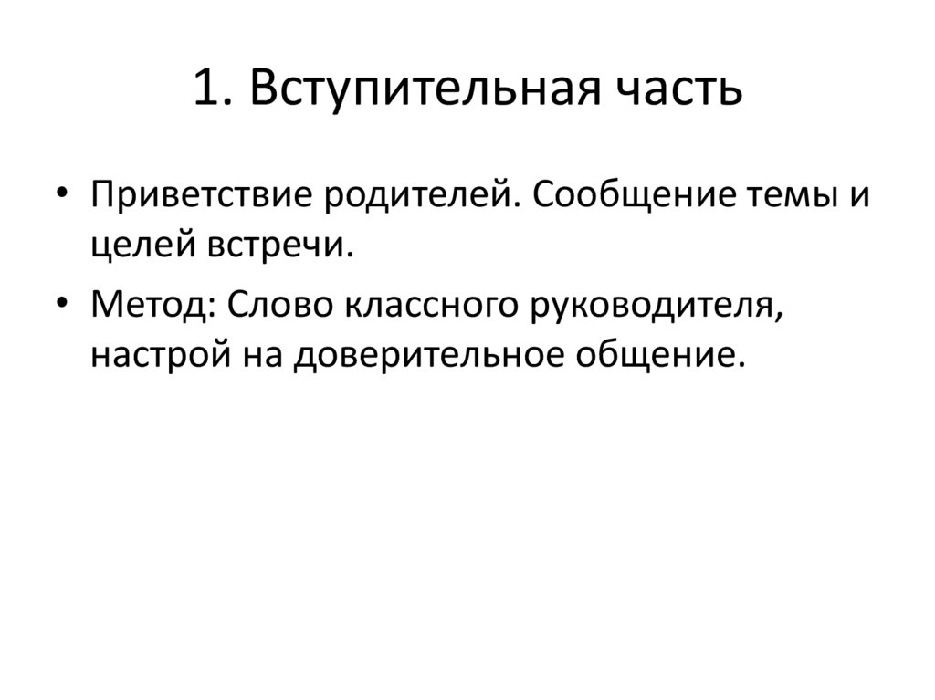 1. Вступительная часть• Приветствие родителей. Сообщение темы и