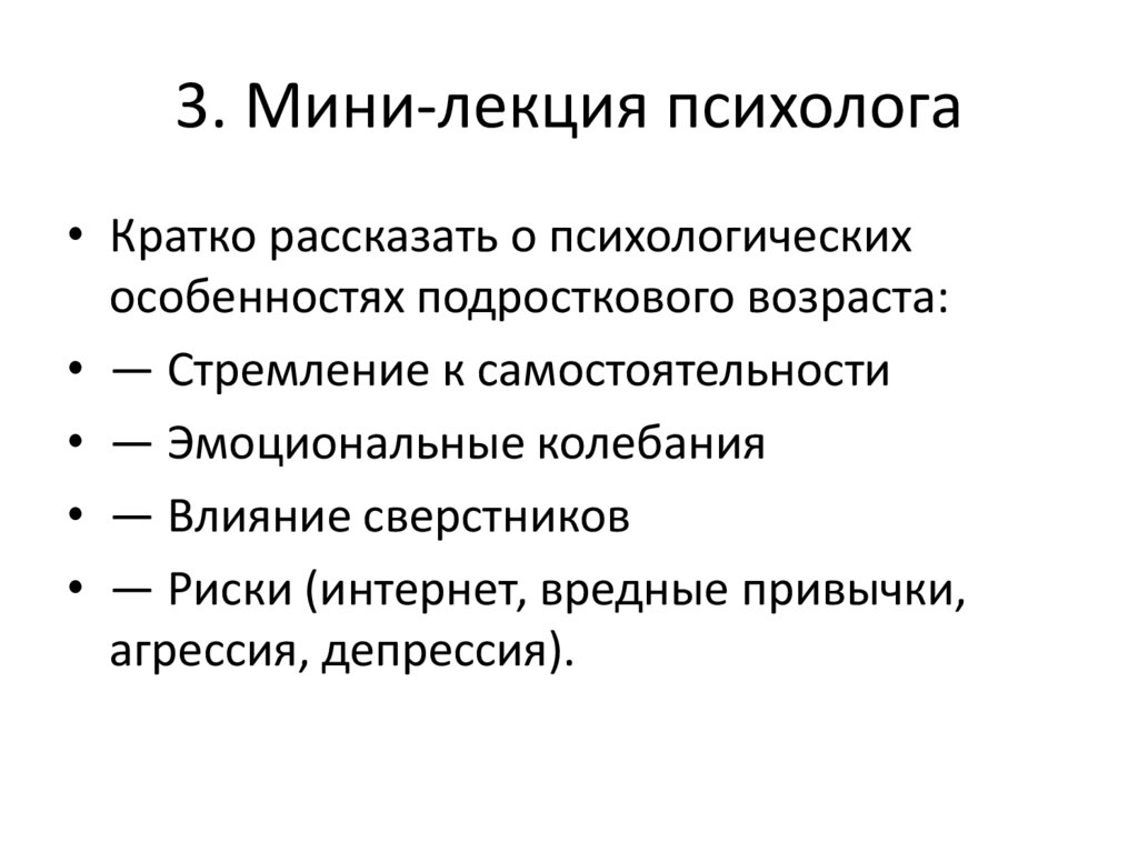 3. Мини-лекция психолога• Кратко рассказать о психологических