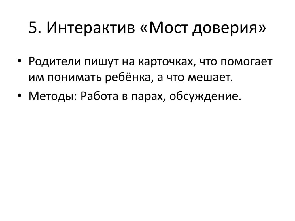 5. Интерактив «Мост доверия»• Родители пишут на карточках, что помогает