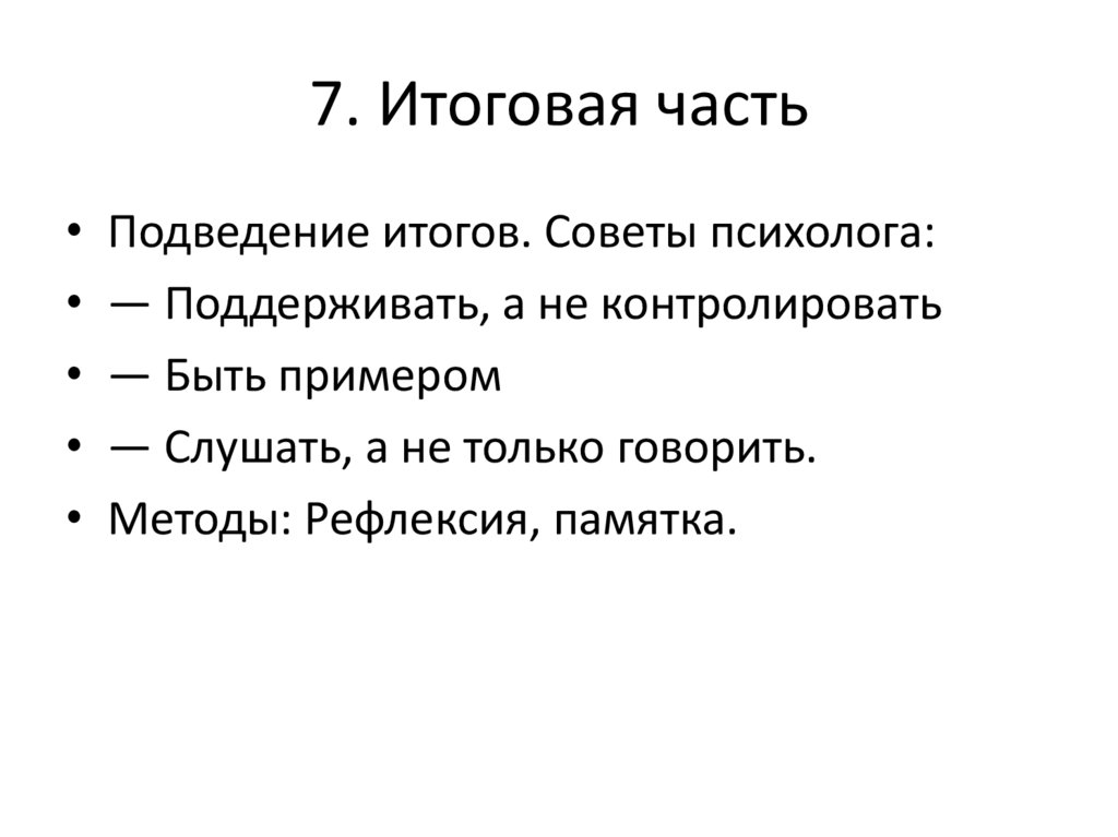 7. Итоговая часть• Подведение итогов. Советы психолога: