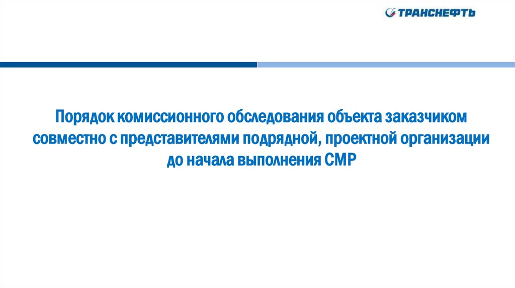 Порядок комиссионного обследования объекта заказчикомсовместно с представителями подрядной, проектной организации