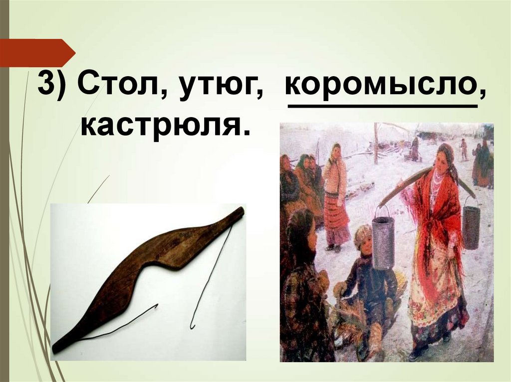 3) Стол, утюг, коромысло,