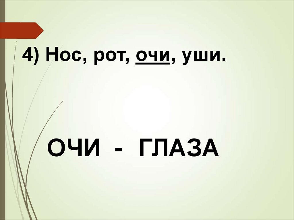 4) Нос, рот, очи, уши.ОЧИ - ГЛАЗА