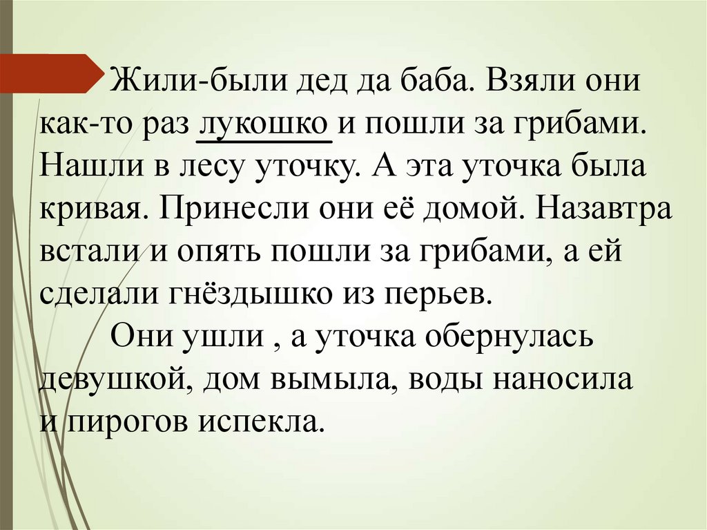 Жили-были дед да баба. Взяли оникак-то раз лукошко и пошли за грибами.