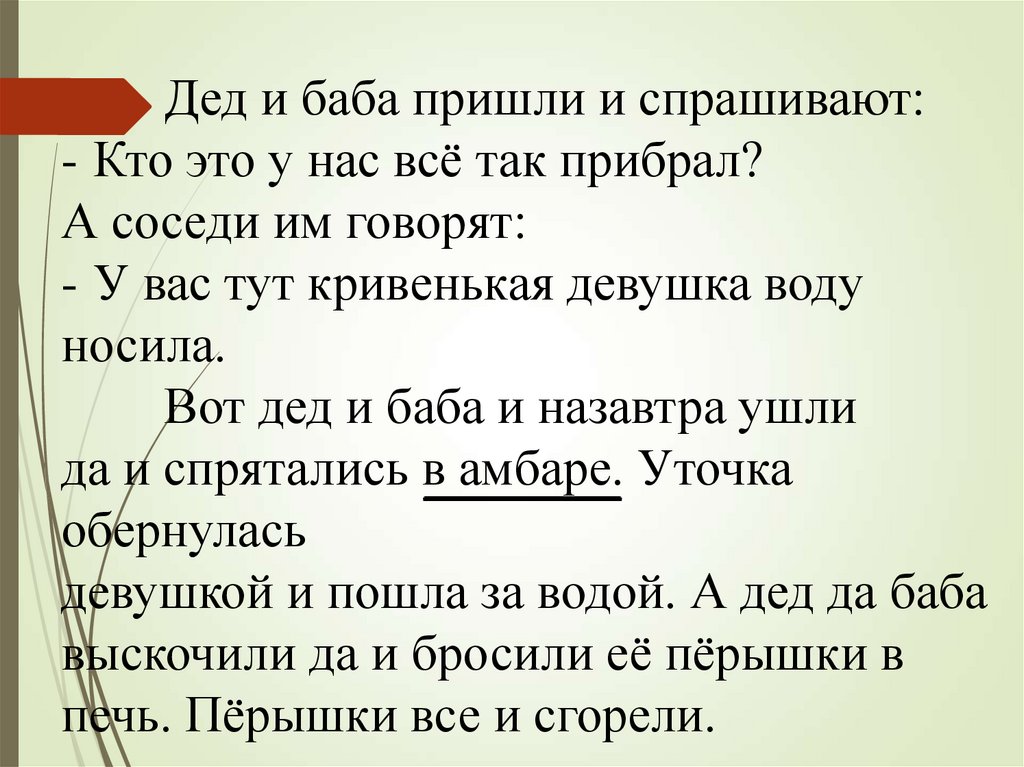 Дед и баба пришли и спрашивают:- Кто это у нас всё так прибрал?
